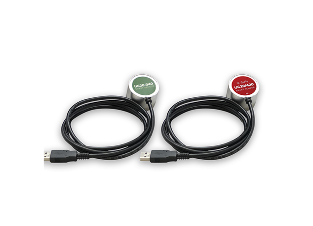 Calibrating irradiance in Q-SUN xenon arc testers is simple using the Universal Calibrator system’s UC20 calibration radiometer, and takes only a few minutes. UC20 devices are available with either a 340 nm, 420 nm, or 300-400 nm TUV (Total UV) sensor and must match the type of sensor actually used in the Q-SUN tester.